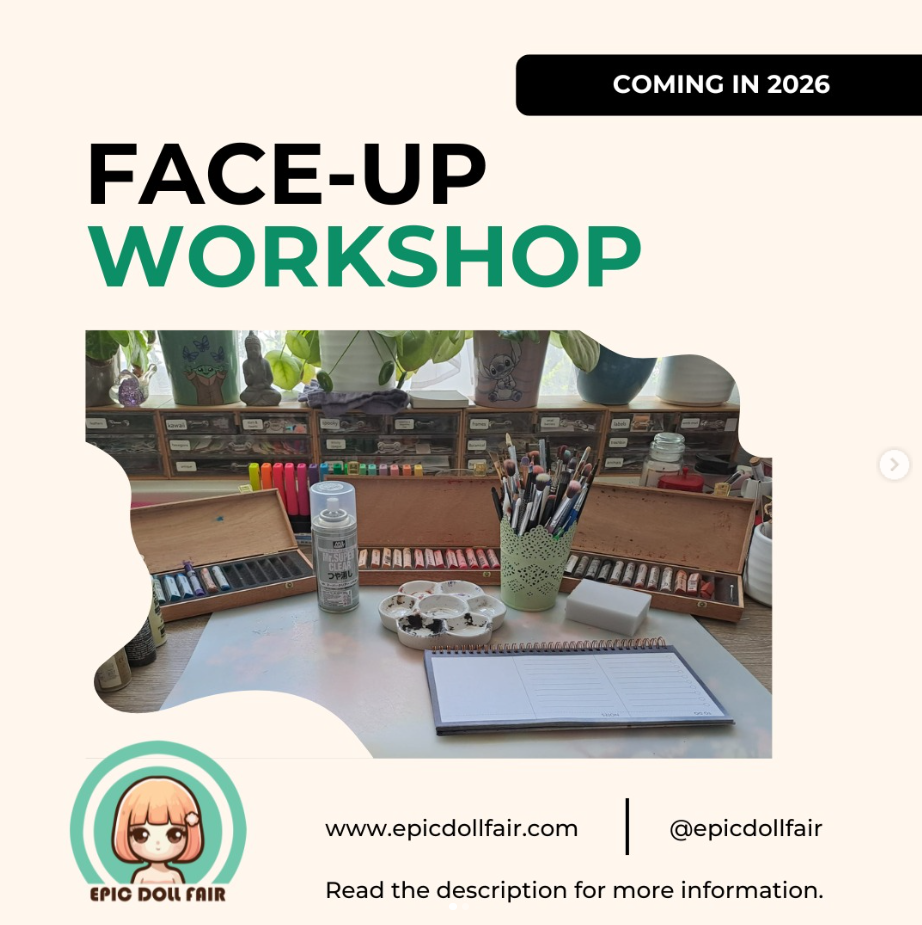 - Een blanco resin BJD hoofdje is vereist. Zorg er dus voor dat je deze in je bezit hebt tijdens de workshop!